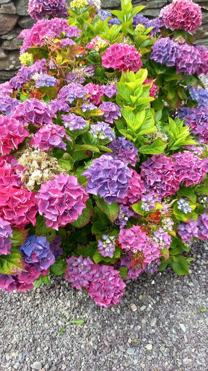 On entering the property from the front via a private entrance driveway is a mature garden withย some rose trees, hydrangeas and lilies which are setย in limestone coloured gravelled areas and as we swish aroundย we arrive atย a different aspect of the garden with more colourful plantsย and shrubs. To the rear of the property we have , as a backdrop some natural rockย with many shrubs and plants in situย to include holly trees,ย victoria tree, natural habitat to include flora and fauna.ย In the rear garden area are some lilies, crocosmia, mallow, cultivated mount brescia, garlic, parsley, lupins,ย daffodils, begonias,ย rose bushes, dandelions, daisies and lots of blackcurrent trees as well as strawberry trees.