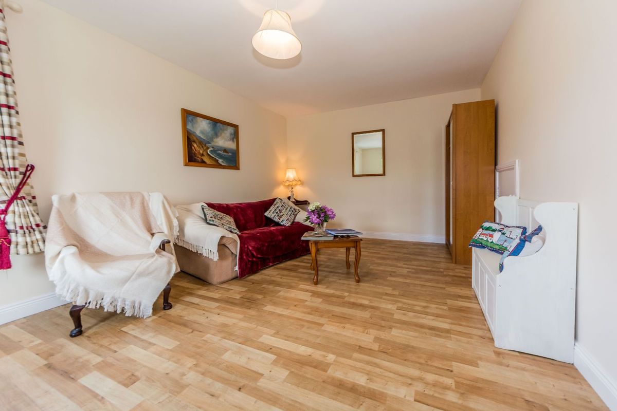 LEISURE ROOM/4th BEDROOM/STUDY:ย ย ย ย ย ย ย ย ย ย ย ย ย ย ย 18’00; x 10’5. Laminate wooden flooring.ย ย 2 Windows, one to the front and one to the side.ย Bright spacious room …could be used as a 4th bedroom, etc.ย Three lots of twin plugs.ย 1 Ceiling light.ย Decorated with style and attention to detail.ย ย 3 Piece suite.ย ย Rocking Chair.ย ย Table.ย Seating box desk..ย 1 Radiator.ย Door to storage room.ย Decorated with attention to detail.