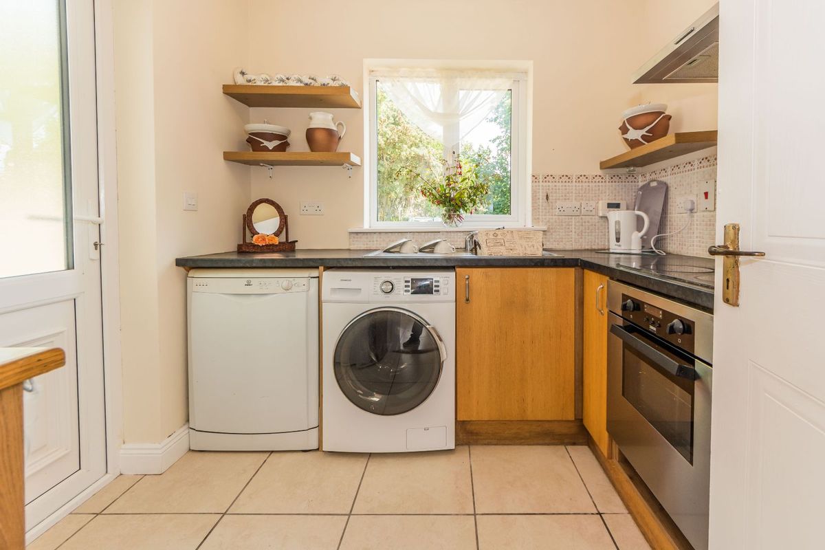 KITCHEN:ย ย ย ย ย ย ย ย ย ย ย ย ย ย ย ย ย ย ย ย ย ย ย ย ย ย ย ย ย ย ย ย ย ย ย ย ย ย ย ย 8’00 X 8’00ย ย Tiled floor area.ย ย 1 Window east facing /morning sun. Door leading to the outside garden.ย The oil fired central heating system is controlled from the kitchenย for all roomsย both at ground and 1st floor levels.ย Plentiful amount of plugs and points.ย Single drainer sink.ย ย ย Integrated cooker/hob.ย ย Washing machine.ย ย Dishwasher.ย ย ย Microwave.ย ย Ground floorย units with open shelving at eye level.ย ย ย ย ย Extractor hood.ย ย ย Partially tiled walls.ย ย ย Neat and compact.