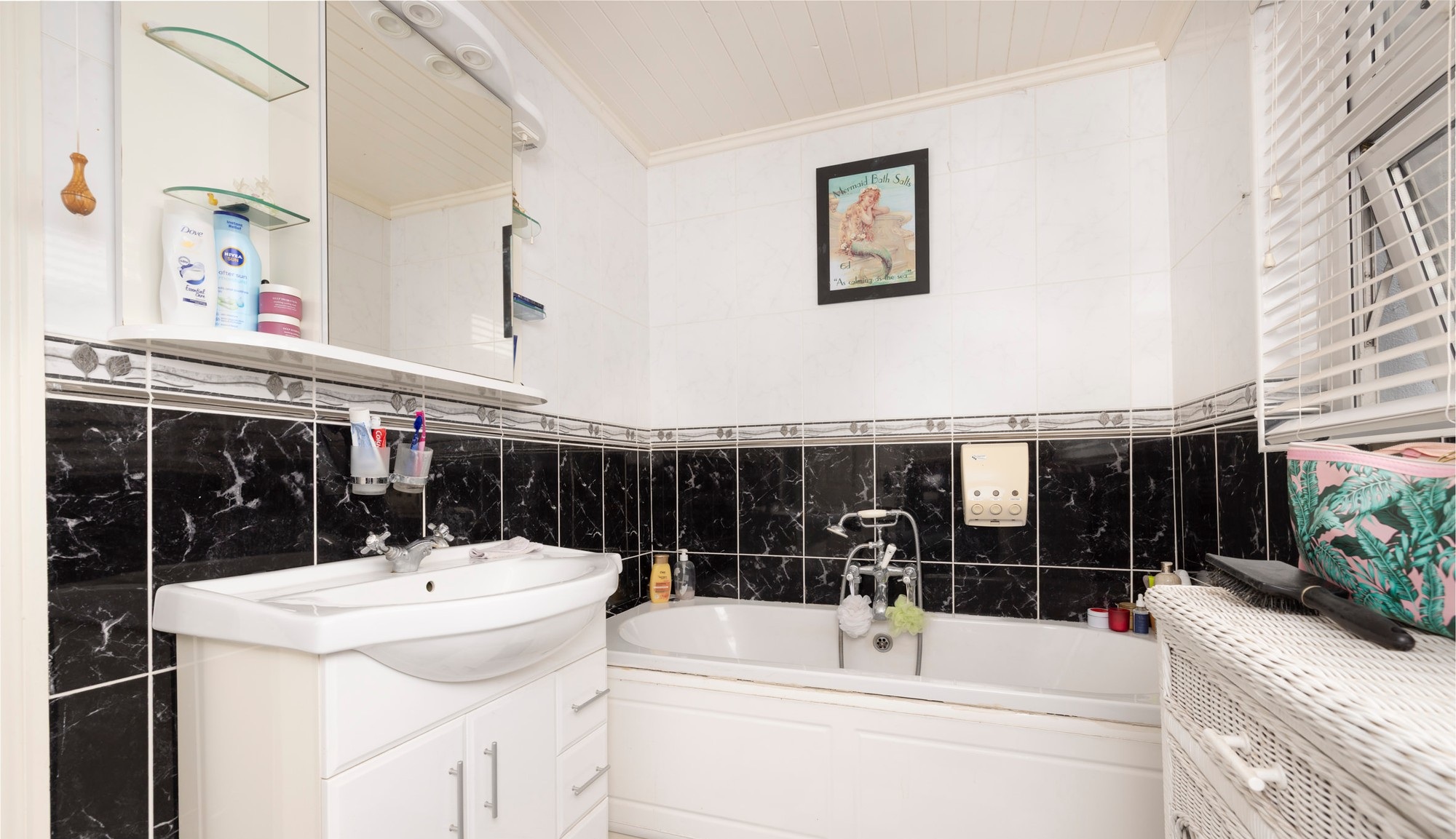 | Family Bathroom | 9’7” x 5’9” | Full bath, WC, vanity unit, fully tiled. |