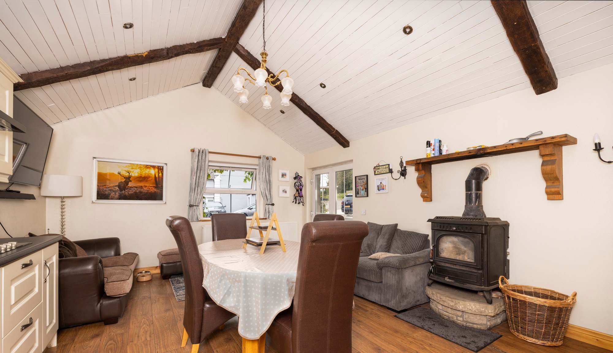 | Kitchen/Dining/Living | 18’8” x 14’3” | Open-plan living with fitted kitchen, wood burner with back boiler, electric appliances. |